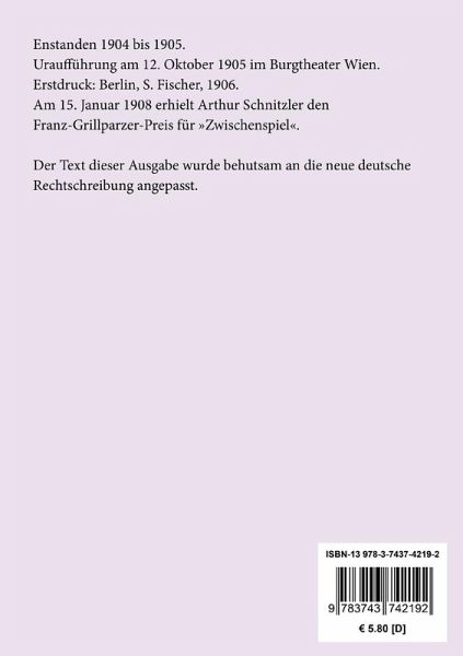 Arthur Schnitzler: Zwischenspiel. Komödie in drei AktenEnstanden 1904 bis 1905. Uraufführung am 12. Oktober 1905 im Burgtheater Wien. Erstdruck: Berlin, S. Fischer, 1906. Am 15. Januar 1908 erhielt Arthur Schnitzler den Franz-Grillparzer-Preis für »Zwischenspiel«.Neuausgabe mit einer Biografie des Autors, herausgegeben von Karl-Maria Guth, Berlin 2023.Der Text dieser Ausgabe wurde behutsam an die neue deutsche Rechtschreibung angepasst.Umschlagabbildung: Ernst Ludwig Kirchner, Paar im ZimmerGesetzt aus der Minion Pro, 11 pt.Die Sammlung Hofenberg erscheint im Verlag Henricus - Edition Deutsche Klassik GmbH, BerlinÜber den Autor:1862 in eine begüterte jüdische Arztfamilie in Wien hineingeboren studiert Arthur Schnitzler selbst Medizin und betreibt nach kurzen Krankenhausjahren eine Privatpraxis, die er mit zunehmender literarischer Tätigkeit immer weiter reduziert. Er lernt Sigmund Freud kennen und begeistert sich für dessen Studien zum Un- und Unterbewussten. Gemeinsam mit Hugo von Hofmannsthal gilt er als Kern der »Wiener Moderne« und ist einer der bedeutendsten Kritiker seiner Zeit. Mit der Novelle »Leutnant Gustl« führt er den inneren Monolog, die seinen Figuren assoziative Reaktionen auf ihre Umwelt ermöglichen, in die deutsche Literatur ein. Seine Montagetechnik verwebt Klischees und vermeintlich individuelle Reaktionen zu einem überindividuellen Typus. Egoistische Flucht vor Verantwortung und Bindungsängste sind zentrale Themen seines umfangreichen Werkes. Nachdem ihm 1921 nach einem Skandal um seinen »Reigen« die Aufführungsgenehmigung entzogen wird, ernennt ihn der österreichische PEN-Club 1923 zu seinem Präsidenten. Drei Jahre später erhält er den Burgtheaterring und gehört zu den meistgespielten Dramatikern auf deutschen Bühnen, als er 1931 in Wien an einer Gehirnblutung stirbt.