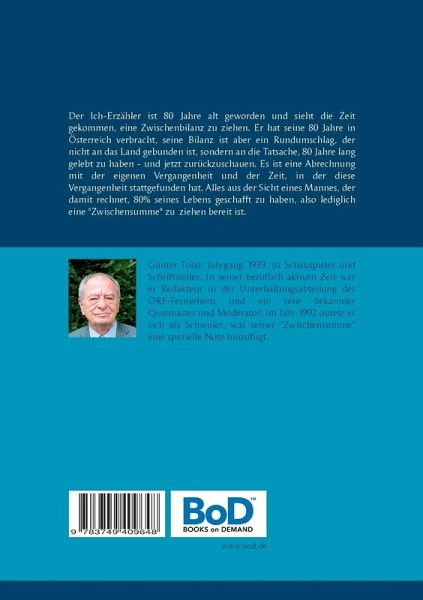 Der Ich-Erzähler ist 80 Jahre alt geworden und sieht die Zeit gekommen, eine Zwisschenbilanz zu ziehen. Er hat seine 80 Jahre in Österreich verbracht, seine Bilanz ist aber ein Rundumschlag, der nicht an das Land gebunden ist, sondern an die Tatsache, 80 Jahre lang gelebt zu haben - und jetzt zurückzuschauen. Es ist eine Abrechnung mit der eigenen Vergangenheit aus der Sicht eines Mannes, der damit rechnet, 80% seines Lebens geschafft zu haben