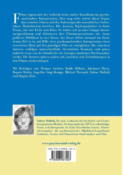 Filme eignen sich wie vielleicht keine andere Kunstform zur psychoanalytischen Interpretation. Dies mag nicht zuletzt daran liegen, dass zwischen Filmen und den Äußerungen des menschlichen Seelenlebens Ähnlichkeiten bestehen. Die Autoren, Psychoanalytiker in freier Praxis, eint eine Liebe zum Kino. Sie haben sich in einer Gruppe zusammengeschlossen und diskutieren ihre Filminterpretationen mit einem größeren Publikum in zwei Kinos. Aus dieser Arbeit entstand das Buch, dessen Ziel es ist, mithilfe einer psychoanalytischen Interpretation einen erweiterten Blick auf den jeweiligen Film zu ermöglichen. Die einzelnen Autoren verfolgen unterschiedliche theoretische Konzepte und geben dadurch etwas von der Bandbreite der heutigen modernen Psychoanalyse wieder. Die Autoren spüren zudem auf, inwiefern sich Zeitströmungen in den Filmen niederschlagen.