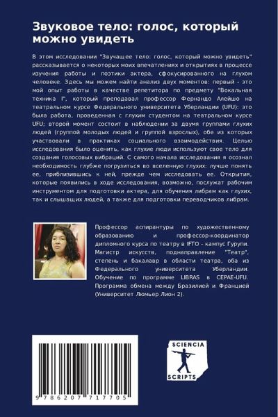 V ätom issledowanii "Zwuchaschee telo: golos, kotoryj mozhno uwidet'" rasskazywaetsq o nekotoryh moih wpechatleniqh i otkrytiqh w processe izucheniq raboty i poätiki aktera, sfokusirowannogo na gluhom cheloweke. Zdes' my mozhem najti analiz dwuh momentow: perwyj - äto moj opyt raboty w kachestwe repetitora po predmetu "Vokal'naq tehnika I", kotoryj prepodawal professor Fernando Alejsho na teatral'nom kurse Federal'nogo uniwersiteta Uberlandii (UFU): äto byla rabota, prowedennaq s gluhim studentom na teatral'nom kurse UFU; wtoroj moment sostoit w nablüdenii za dwumq gruppami gluhih lüdej (gruppoj molodyh lüdej i gruppoj wzroslyh), obe iz kotoryh uchastwowali w praktikah social'nogo wzaimodejstwiq. Cel'ü issledowaniq bylo ocenit', kak gluhie lüdi ispol'zuüt swoe telo dlq sozdaniq golosowyh wibracij. S samogo nachala issledowaniq q osoznal neobhodimost' glubzhe pogruzit'sq wo wselennuü gluhih: luchshe ponqt' ee, pribliziwshis' k nej, prezhde chem issledowat' ee. Otkrytiq, kotorye poqwilis' w hode issledowaniq, wozmozhno, posluzhat rabochim instrumentom dlq podgotowki aktera, dlq obucheniq libram kak gluhih, tak i slyshaschih lüdej, a takzhe dlq podgotowki perewodchikow libram.