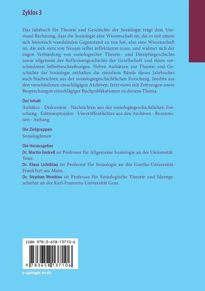 Dr. Martin Endreß ist Professor für Allgemeine Soziologie an der Universität Trier. Dr. Klaus Lichtblau ist Professor für Soziologie an der Goethe-Universität Frankfurt am Main. Dr. Stephan Moebius ist Professor für Soziologische Theorie und Ideengeschichte an der Karl-Franzens-Universität Graz.