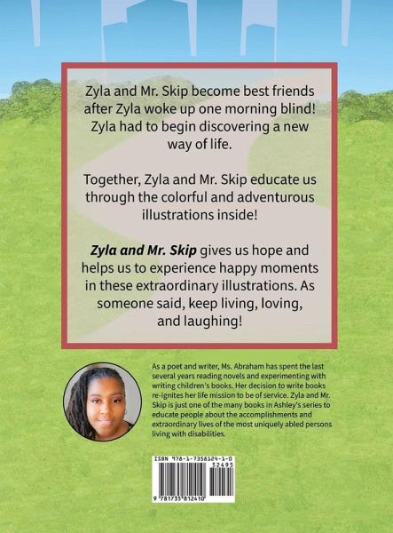 Zyla and Mr. Skip become best friends after Zyla woke up one morning blind! Zyla had to begin discovering a new way of life. ¿Ashley Abraham, born in South Carolina to the late Larry and Beatrice Abraham, is the youngest of 4 siblings; Jeff, Anthony, and Lisa Baker. She has two nieces and one nephew. Ashley enjoys spending time with her family and friends, traveling, listening to music, helping others, and reading.
