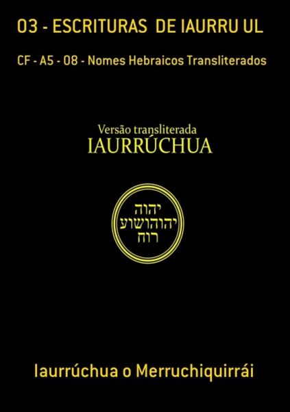 Sinopse: ESCRITURAS DE IAURRU UL - Nomes Hebraicos Transliterados Fonéticos - CF - A5 - 08 Autor: Iaurrúchua o Merruchiquirrái - 673 Pg - Capa Flexível ESCRITURAS DE IÁURRU UL Composta por Velha e Nova Aliança, 39 Livros da Velha Aliança e 27 da Nova Aliança, total 66 livros, Transliteração fonética, escrita conforme a pronúncia. Fica mais fácil a leitura. Pode ser formato A5 ou A4. São dois tamanhos de letras: Word 08 (Pequena), Word 12 (Grande). Sendo que o formato A5 é só no tamanho de letra 08. Todas contêm o mesmo conteúdo, a diferença entre elas é só o tamanho das letras: Pequena 08 e Grande 12 ou o formato A5 e A4. Foram corrigidas, tiradas as muitas corrupções feitas com o propósito de enganar o povo gentil. Principalmente os gregos da época da falsificação. Em cumprimento ao versículo oito do capítulo oito de Iarmiiáurru que diz: "Como podem dizer". Nós compreendemos as suas leis , "quando os vossos legisladores as trocaram de forma a poderem significar aquilo que eu nunca disse"? Veja os sites: yaohushua.com.br e oholyao.com.br