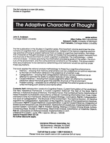 The first volume of a series on Cognition. Looking at Memory, Catergorization, Causal Inference and Problem Solving. First Published in 1990. Routledge is an imprint of Taylor & Francis, an informa company.