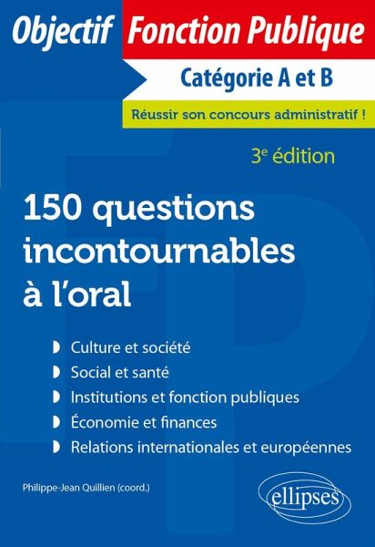 Ces 150 questions sont choisies parmi celles qui sont le plus souvent posées par les jurys des concours étatiques, territoriaux ou hospitaliers de catégorie A ou B.