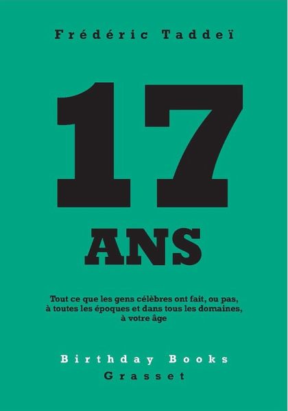 Tout ce que les gens célèbres ont fait, ou pas, à toutes les époques et dans tous les domaines, à votre âge. « L'âge est un quartier de la vie que l'on habite tous ensemble, même si ce n'est pas au même moment. Plusieurs siècles séparent César Borgia, Cardi B, Arthur Rimbaud, Edith Piaf et Elon Musk, mais ils ont 17 ans tous les cinq : le premier est archevêque, l'autre est caissière, le troisième écrit Voyelles, sa voisine est apprentie crémière et le dernier n'a pas un sou. Le succès n'a pas d'âge, les catastrophes non plus. A 17 ans, on peut se faire renvoyer du lycée ou avoir le prix Nobel, être suivie par 37 millions de gens sur TikTok ou se retrouver dans un centre de détention pour mineurs. Et, comme tous les quartiers, celui-ci se trouve à la croisée des chemins : on peut devenir Marco Polo ou Billie Eilish, Nabilla ou Kevin Hart, Serena Williams ou Jesse James. »