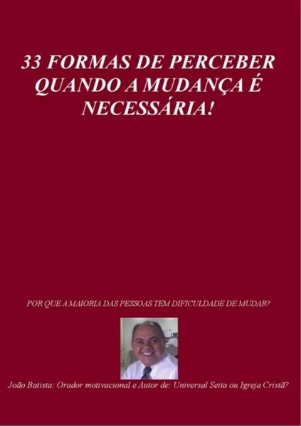 33 Tópicos que vão motivar você a mudar em todas as áreas: Sentimental, Familiar, Profissional, Pessoal e Espiritual.Vamos tratar de assuntos que poderá levar você a se valorizar e trabalhar com sua autoestima: Positiva ou Negativa. Um livro para Jovens, Casados e Solteiros. Responderemos algumas questões como: Por que as coisas parecem tão difíceis pra mim? Por que eu me sinto atraída por cafajestes? Por que só escolho a pessoa errada? Mesmo sabendo o que é o certo, acabo escolhendo fazer o errado. Por quê? Por que algumas pessoas me acham negativa? Por que a maioria das garotas, aparentemente, só gostam de homens que as maltratam? Tendo em vista os grandes dilemas vividos por tantas pessoas, que resolvi escrever esse livro. Não tenho a pretensão de mudar ninguém, apenas, de tentar fazer com que as pessoas busquem conhecer a si próprias o suficiente pra perceber através desses temas, que podem melhorar. Que venham perceber nos seus relacionamentos algumas dessas características e que possam tomar suas decisões coerentemente. Espero apenas que as pessoas pensem por si próprias, sem influências preconceituosas, e decidam o melhor para elas.