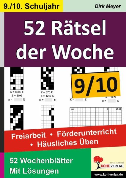 Dieses Arbeitsheft richtet sich an Schülerinnen und Schüler der Klassen 9 und 10 der Sekundarstufe und bietet 52 spannende Rätsel zu verschiedenen mathematischen Bereichen. Die Arbeitsblätter sind ideal zur Wiederholung, Stärkung und Festigung mathematischer Grundkenntnisse. Sie eignen sich hervorragend für das selbstständige Arbeiten in der Freiarbeit, zum Üben zu Hause, für Vertretungsstunden oder als zusätzliches Material zwischendurch. Alle Kopiervorlagen sind mit Lösungen ausgestattet, um eine einfache Selbstkontrolle zu ermöglichen. Dieser Band bietet eine Vielzahl an Rätselvarianten, die Abwechslung und Motivation in den Mathematikunterricht bringen. Von Sudokus über Spinnennetzrätsel bis hin zu Rechen-Zeichen- und Wabenrätseln - für jeden Geschmack ist etwas dabei. Mit 52 Rätseln gibt es für jede Woche des Jahres eine Knobelaufgabe, die sowohl schnelle Schülerinnen und Schüler als auch alle, die eine zusätzliche Herausforderung suchen, anspricht. Die Rätsel sind durchdacht und gut strukturiert, sodass sie problemlos in den Unterricht integriert werden können. Sie eignen sich besonders gut als Zusatzaufgabe, zur Beschäftigung in Vertretungsstunden oder als kreativer Ansatz, um das mathematische Denken auf spielerische Weise zu fördern. 72 Seiten, mit Lösungen