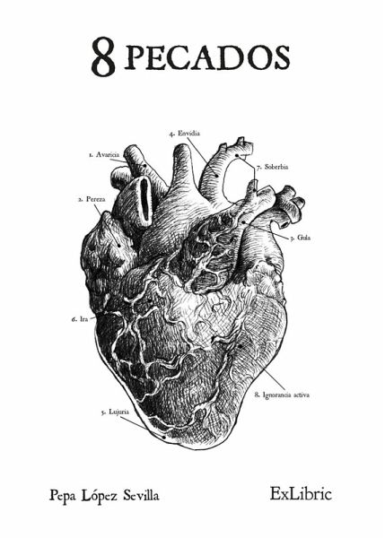 8 Pecados es una colección de ocho relatos cuyos protagonistas son hombres y mujeres que presentan contradicciones, secretos y conflictos internos que los hacen únicos. En todos ellos la crítica y la denuncia social están presentes, y se insinúan el misterio y el suspense. Además de tratar los 7 pecados capitales, la autora reflexiona acerca de un «octavo pecado»: uno de los grandes males de nuestros tiempos, que tiene consecuencias devastadoras tanto a nivel individual como social.
