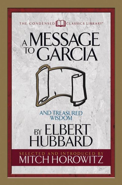 This edition of A Message to Garcia surpasses other volumes because it includes short passages of life-advice from Hubbard, which elucidate his message and demonstrate how to put it into action.< Selected and introduced by PEN Award-winning historian Mitch Horowitz, this slender volume offers a life-changing journey into a single idea that can make all the difference in your earning power, effectiveness, and success.