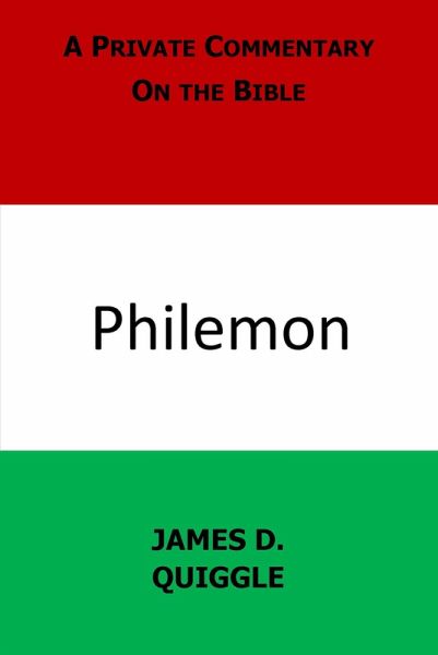 Through Paul's letter to Philemon the Holy Spirit created Scripture instructing the church how and why to reconcile with sinning Christian brethren. The letter divides into six sections: greeting, praise and prayer, an appeal, an argument, a promise, assurance and closing thoughts. The exposition is based on the author's translation. James D. Quiggle has written commentaries on Old and New Testament books, a biography of Adam and Eve, works on tithing, the Antichrist, and the doctrines of foreordination, election, and predestination. All are available through online retailers in eBook/epub formats and in print. The author has a lifetime of teaching the scriptures and master's degrees in religion and theology. Philemon is the ninth book in his Private Commentary on the Bible series.