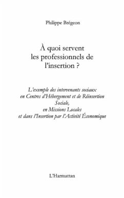 Cet ouvrage concerne l'intervention sociale en charge de dispositifs d'insertion. L'ambition est d'identifier les representations du metier, de mettre a jour les pratiques des intervenants. Quelles identites professionnelles projettent-ils ? Pouvons-nous observer une reformulation du rapport avec les usagers, vers des modes de collaboration moins asymetriques ?