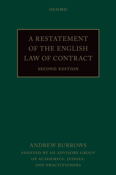 Following the success of the first edition, this is the fully updated second edition of A Restatement of the English Law of Contract. Designed to enhance the accessibility of the common law the Restatement comprises a number of clear and succinct rules, fully explained by a supporting commentary, which set out the general law of contract in England and Wales. Written by one of the leading authorities in this area, in collaboration with an advisory group of senior judges, academics, and legal practitioners, the Restatement offers a novel and powerfully persuasive statement of the law in this central area of English law. All lawyers dealing with the English law of contract, whether as practitioners, judges, academics, or law students, will benefit from this Restatement. The English law of contract is one of the most respected systems of contract law in the world and by the device of a 'choice of law' clause is often chosen by foreign commercial parties as the applicable law to govern their contract. One of the aims of the Restatement is for the reader, including those from civil law jurisdictions, to see quickly and easily how the different elements of the English law of contract fit together.