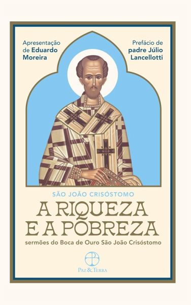 São João Crisóstomo, doutor da Igreja, defensor dos pobres e maior orador da história. Em A riqueza e a pobrezasão destacados seus sermões que denuciavam os abusos cometidos por grandes líderes. Jesus fez dos empobrecidos os primeiros beneficiários do reino de Deus e, ao longo do tempo, eles vêm sendo uma preocupação constante da Igreja católica. A doutrina social do cristianismo dos primórdios se condensou em dois princípios: primeiro, o supérfluo do rico é o necessário do pobre; e o segundo, aquele que possui bens é apenas o seu administrador e não o seu dono. Por isso, entendemos por que, ao ser nomeado bispo de Constantinopla, a primeira atitude de São João Crisóstomo foi colocar todos os bens da Igreja a serviço dos mais necessitados. Esta edição de A riqueza e a pobreza, com os quatro famosos sermões sobre o pobre Lázaro e o homem rico, conta com a admirável apresentação de Eduardo Moreira, que, ao escutar seu coração e a mensagem do Evangelho, fez-se um corajoso defensor dos mais pobres e um denunciante das causas da desigualdade. Há também o prefácio de padre Júlio Lancellotti, o pastor dos desgarrados e daqueles em situação de rua. Ele comenta o destino dos lázaros modernos, conclama o amor e a solidariedade para com população marginalizada e incita ao questionamento para a construção de um mundo mais humanizado. Neste livro, Crisóstomo alicerceia-se na palavra bíblica e nos valores cristãos primordiais, transmitindo ensinamentos que extrapolam os limites da religião e da fé. Defende a existência fraterna entre todos os seres humanos, baseada no amor e na compaixão. Suas palavras são para hoje e guardam perene atualidade. Leonardo Boff, teólogo, filósofo e professor aposentado de Ética, Filosofia da Religião e Ecologia na Universidade do Estado doRio de Janeiro (UERJ) "As homilias de Crisóstomo eram potentes, corajosas e denunciavam explicitamente os abusos cometidos por líderes políticos e religiosos. Não à toa, o 'boca de ouro' [...] é considerado, por muitos, até hoje, o maior pregador cristão da história". - Da apresentação de Eduardo Moreira "A denúncia da riqueza perversa deve ser permanente, mesmo que, como diz São João Crisóstomo, os ricos ébrios em suas tavernas desconsiderem nossas palavras. O tribunal da história há de condenar os que promovem as desigualdades. Impressiona a palavra do santo em seu segundo sermão: 'Quando Lázaro estava por perto, o rico costumava ignorá-lo. Quando está distante, ele o chama. O homem a quem ele não enxergava ao entrar e sair, ele agora o vê com clareza, na distância.' O julgamento é severo, pois o doutor da Igreja considera 'roubo não compartilhar suas posses'; atitudes egoístas são, portanto, embuste e fraude." - Do prefácio de padre Júlio Lancellotti