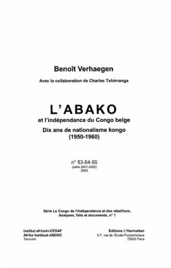 L'ABAKO fut le premier parti politique du Congo, et son role fut dominant dans la lutte pour l'independance du pays jusqu'en 1959. Cette histoire de l'ABAKO est fondee sur l'analyse des documents publies et inedits recoltes sur la presse de l'epoque et sur les temoignages oraux et ecrits des acteurs. Cet ouvrage retrace la montee en puissance de l'ABAKO de 1950 a 1959.