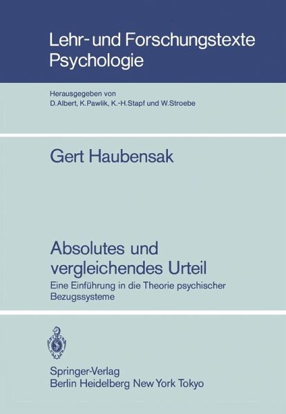 I. Teil.- 1. Kapitel Der Begriff des absoluten Urteils.- 2. Kapitel Psychische Bezugssysteme.- 3. Kapitel Kategorisieren, Identifizieren und Lernen.- 4. Kapitel Das Vergleichsurteil.- Zusammenfassung des Ersten Teils.- II. Teil.- 1. Kapitel PARDUCCIS Range-Frequency-Theorie.- 2. Kapitel WITTEs Äquisektionstheorie.- 3. Kapitel PETZOLDs Konsistenztheorie.- 4. Kapitel Der Primacy-Effekt.- 5. Kapitel Das Kontrastmodell.- Zusammenfassung des Zweiten Teils und Schluss.- Anhang I: Programm "Kontrastmodell".- Anhang II: Programm "Pseudo-Sequenzeffekte".- Autorenverzeichnis.