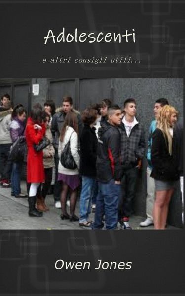 Adolescenti e altri consigli utili Spero che le informazioni contenute in questo libro vi possano essere utili. Si tratta di informazioni che riguardano gli adolescenti e i problemi che affrontano e che sono organizzate in 20 capitoli di circa 500-600 parole ciascuno. Spero che sia di gradimento per coloro che sono interessati alle questioni che riguardano gli adolescenti. In più, vi concedo il permesso di usare il contenuto del libro sulla vostra pagina web, blog o newsletter, anche se sarebbe meglio se prima lo parafrasaste con parole vostre. Vi autorizzo anche a rivendere gli articoli separatamente. L'unico diritto che non vi è concesso è di rivendere o cedere a terzi l'intero libro.