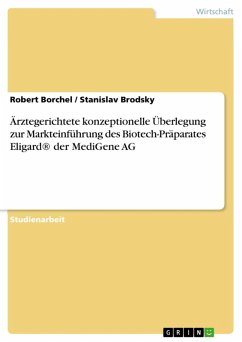 Studienarbeit aus dem Jahr 2004 im Fachbereich BWL - Offline-Marketing und Online-Marketing, Note: 1,3, Technische Hochschule Wildau, ehem. Technische Fachhochschule Wildau (Technische Fachhochschule Wildau), Veranstaltung: Marketing, Sprache: Deutsch, Abstract: Die hier vorliegende Belegarbeit beinhaltet eine konzeptionelle Überlegung zur Markteinführung des Biotech-Präparates Eligard® der MediGene AG und bezieht sich dabei im Wesentlichen auf die Distributionspolitik innerhalb des Marketing- Mixes. Dazu wird im ersten Teil die Aufgabenstellung dieser Arbeit und die Zielstellung der Untersuchung kurz erläutert. Eine kurze Vorstellung des deutschen Biotech-Marktes, des Unternehmens MediGene AG und eine Produkt-Charakteristik des Prostatamedikamentes Eligard® bilden den Schwerpunkt des zweiten Teils dieser Arbeit. Im dritten Teil werden anhand des Vergleiches zwischen einem alten und aktuellen Pharma-Modell die Kennzeichen eines Pharma-Marktes graphisch dargestellt und die Austauschpartner ausführlich erklärt. Die theoretischen Grundlagen der Distributionspolitik und deren, für die Aufgabenstellung relevanten Instrumente, werden im vierten Teil charakterisiert. Daran anknüpfend wird im fünften Teil das zielgruppenspezifische Marketing gegenüber Ärzten vorgestellt. Der sogenannte Becker'sche Ansatz der Arzt- Typolisierung bildet den Schluss dieses theoretischen Teils der Arbeit. Abschließend wird im sechsten Teil für das Medikament Eligard® ein innovatives Konzept zum Vertriebsmanagement in Form des "3-C-Außendienst-Struktur- Dreiecks" vorgestellt und auf die genauere Funktionen der Pharmareferenten eingegangen. Im siebenten Teil dieser Belegarbeit wird schließlich ein kurzes Fazit gezogen.