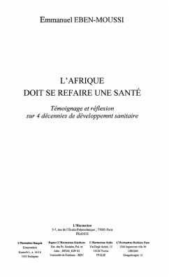 Au travers d'une analyse de situation, l'auteur fait un constat du developpement sanitaire cahotant de l'Afrique. Il importe de revisiter les performances des systemes nationaux de sante, de baliser la medecine traditionnelle africaine, de reagir aux nouveaux enjeux du marche du medicament (acces aux generiques et aux molecules innovantes), de repositionner la Sante en Afrique comme une exigence forte au coeur du developpement du continent.