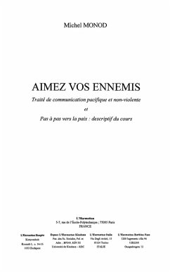 Une injonction a priori impossible a premiere vue devient tout a fait realisable pour qui change d'attitude interieure et se laisse guider par le respect de soi et la consideration de l'autre. La communication non-violente de Marshall Rosenberg est adaptee a toutes les cultures car elle est fondee sur la personne humaine. Michel Monod la traduit pour nous dans notre culture chretienne et trouve dans le Christ le fondement originel de la communication pacifique.