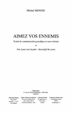 Une injonction a priori impossible a premiere vue devient tout a fait realisable pour qui change d'attitude interieure et se laisse guider par le respect de soi et la consideration de l'autre. La communication non-violente de Marshall Rosenberg est adaptee a toutes les cultures car elle est fondee sur la personne humaine. Michel Monod la traduit pour nous dans notre culture chretienne et trouve dans le Christ le fondement originel de la communication pacifique.