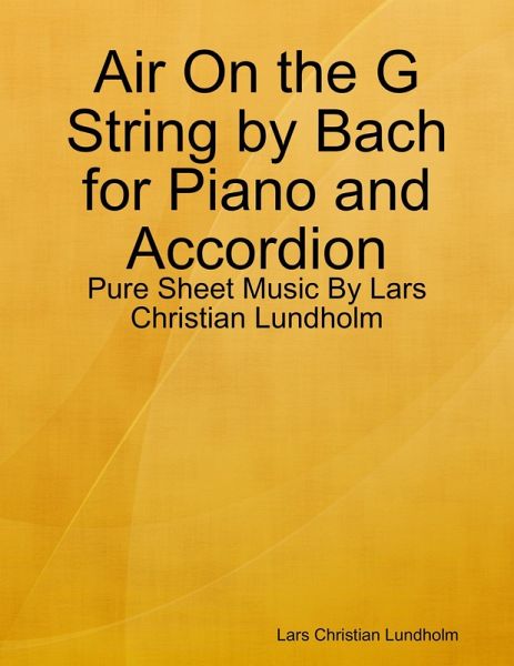 Air On the G String by Bach is from Orchestral Suite No. 3 in D major, BWV 1068 and believed to date back to some time between the years 1717 and 1723. The title itself comes from violinist August Wilhelmj's late 19th century arrangement of the movement from the Orchestral Suite. Often performed at weddings and funerals it has also been featured in numerous times in film and on TV ranging from The Spy Who Loved Me and Seven to CSI:NY and West Wing on TV Sheet Music for Accordion accompanied by Piano arranged by Lars Christian Lundholm. Air On the G String by Bach is also known by alternative title: BWV 1068, Orchestral Suite Number 3 Movement 2, Bach's Air. - Instrumentation: Piano and Accordion - Level: Easy - Score Type: Score and 1 Part - Tempo: Slow - Genre: Baroque - Composer: Johann Sebastian Bach - Year Composed: 1717 - Pages (approximate): 9