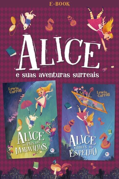 Alice viaja a um mundo fantástico e conhece seres surreais. Conheça sua jornada com os livros: Alice no País das Maravilhas e Alice através do espelho.