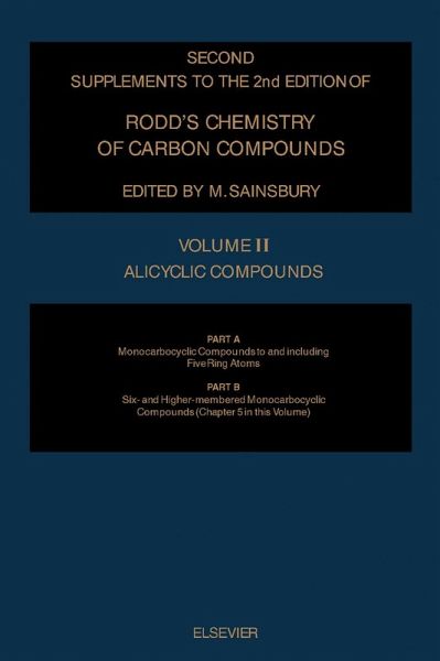 Rodd's Chemistry of Carbon Compounds, Volume II: Alicyclic Compounds surveys advances in the chemistry of three- to six-membered monocarbocycles from 1973 to 1991. This book begins with a detailed review of the conformations and stereochemical analyses of alicycles, including higher members of the series, and then proceeds to deal with the chemistry of individual ring systems. The next chapters cover the prostaglandins and their allies and natural products bearing a cyclohexane, cyclohexene, or cyclohexadiene ring system. A review of the chemistry of the cyclohexadienes and their metallic complexes is provided at the end. This text also includes a list of common abbreviations and symbols. This volume benefits chemical engineering students, particularly those studying the components of organic chemicals.