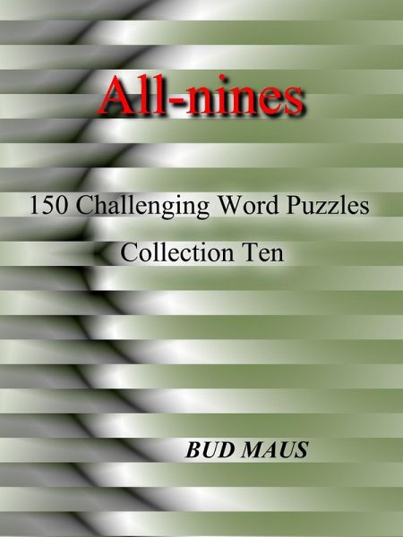 All-nines Collection Ten: 150 brain-stretching. Unique, and challenging word puzzles. All answers consist of nine letters with no duplicated letters. Puzzles are suitable for individual and group use. These puzzles are for your enjoyment not to frustrate. Go slowly and savor the results. Reward yourself with those 'AHA' moments. Share with and challenge others. Make it fun. Don't rush the process. Let your brain work on a puzzle for a set period before looking at the answer. There is no rush or time limit. Do not give up too quickly. Improve your vocabulary and knowledge. Words are power.