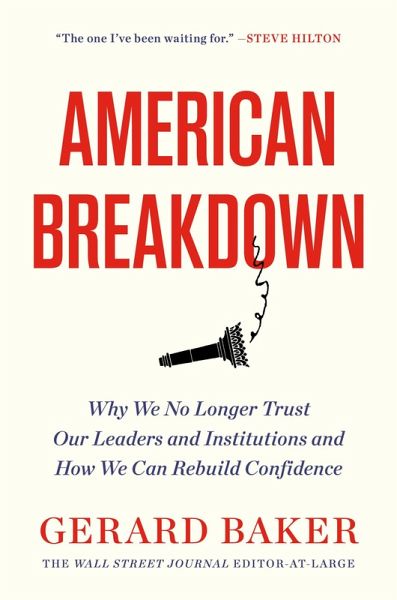 From the former editor-in-chief of the Wall Street Journal, a must-read account of how America suffers from a "trust deficit" that has weakened its cornerstone institutions and divided our society. AMERICAN BREAKDOWN dissects how, in the space of a generation, the pillars that sustained the once-dominant superpower have been dangerously eroded. From government to business, from media to medicine-the strength and security of the American experiment have been weakened by a widening gap between the elites who control these institutions and the public. At the root of this breakdown is a precipitous fall in Americans' trust in their political, business and cultural leaders. As Baker writes, "This pathology of distrust across American society is eating the country away from the inside." Millions of Americans say they have little faith in their country's future, and no longer seem to have trust in their leaders, in their important social and civil institutions, even in their common values and ideals, or ultimately in each other. America in fact hasn't failed. Americans have been failed-misled by inept and deceitful political leaders, deserted by predatory and cynical corporate chiefs, and, above all, betrayed by a cultural elite that has exploited the very freedom this country provided in order to destroy it. AMERICAN BREAKDOWN is a deep analysis and thought-provoking account that explores the ways in which Americans have been let down and offers solutions for how we rebuild trust and reclaim purpose for a better future.