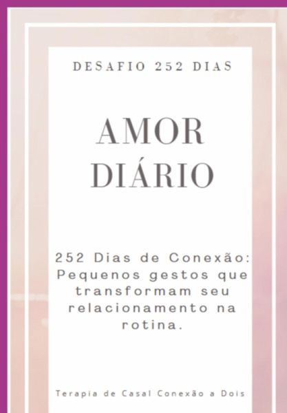 A rotina está desgastando seu relacionamento ? Trabalho, compromissos, responsabilidades... Tudo isso pode acabar afastando o casal sem que percebam, principalmente nos dias mais corridos que são de segunda a sexta. Criamos este desafio de 252 dias para construir uma conexão diária e fortalecer o vínculo no meio da correria da semana. Comece hoje mesmo a mudança e volte a ter uma conexão incrível no seu relacionamento !
