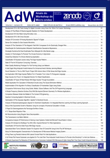 Este livro é a compilação de todos os artigos que foram apresentados no SBMO/WMO'2 - XIV Workshop de Micro-ondas do Laboratório Maxwell em outubro de 2023, estando disponíveis para consulta digital pelo endereço anais.wmo.labmax.org.