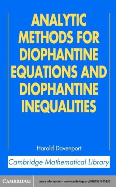 Harold Davenport was one of the truly great mathematicians of the twentieth century. Based on lectures he gave at the University of Michigan in the early 1960s, this book is concerned with the use of analytic methods in the study of integer solutions to Diophantine equations and Diophantine inequalities. It provides an excellent introduction to a timeless area of number theory that is still as widely researched today as it was when the book originally appeared. The three main themes of the book are Waring's problem and the representation of integers by diagonal forms, the solubility in integers of systems of forms in many variables, and the solubility in integers of diagonal inequalities. For the second edition of the book a comprehensive foreword has been added in which three prominent authorities describe the modern context and recent developments. A thorough bibliography has also been added.