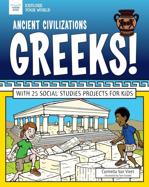 A full-color exploration of the world of ancient Greece, chock full of STEAM projects, fascinating facts about everyone from gods to ordinary people, and essential questions that get kids ages 7 to 10 thinking critically about what survives from the past. Who invented democracy? Where were the Olympics first held? Who were some of the first people to use math? All of these questions and more are explored in Ancient Civilizations: Greeks! With 25 Social Studies Projects for Kids. In this book, elementary-aged kids learn about ancient Greek homes, food, playtime, clothing, conquests, arts and entertainment, gods, and more. Fascinating links between today's world and ancient Greek culture offer opportunities for real-world connections and fun STEAM activities promote critical and creative thinking. STEAM projects use common household products and require very little adult supervision. Activities range from fashioning a model oil lamp from clay to building a courtyard column and constructing a flipbook sailing ship. Readers explore the birth of science, mathematics, astronomy, democracy, and even the Olympic games through fun illustrations, fascinating facts, essential questions, building critical and creative thinking skills across disciplines. Introduces major figures in ancient Greek history, such as Aristotle, Archimedes, Homer, Pythagoras, Socrates, and more. Explores the sites of ancient architectural wonders such as the statue of Zeus at Olympia, the Parthenon, the theater of Epidaurus, and the palace of Knossos.About the Explore Ancient Civilizations set and Nomad PressAncient Civilizations: Greeks! is part of a set of four Explore Ancient Civilization books that bring to life the vibrant cultures of the distant past. The other titles in this series are Ancient Civilizations: Egyptians!, Ancient Civilizations: Romans!, and Ancient Civilizations: Aztecs, Maya, Incas!Nomad Press books in the Explore Your World series integrate content with participation, encouraging readers to engage in student-directed learning. Combining content with inquiry-based projects stimulates learning and makes it active and alive. Nomad's unique approach simultaneously grounds kids in factual knowledge while allowing them the space to be curious, creative, and critical thinkers.All books are leveled for Guided Reading level and Lexile and align with Common Core State Standards and National Curriculum Standards for Social Studies. All titles are available in paperback, hardcover, and ebook formats.
