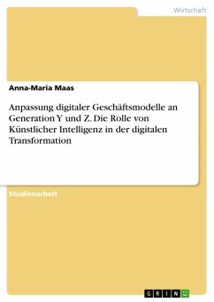 Studienarbeit aus dem Jahr 2024 im Fachbereich Führung und Personal - Generation Y, Generation Z, Note: 1,0, , Sprache: Deutsch, Abstract: Diese Arbeit untersucht den Zusammenhang zwischen den digitalen Vorlieben der Gen Y und Z und der Weiterentwicklung von Geschäftsmodellen. Der Einsatz von KI spielt dabei eine wichtige Rolle. Zunächst werden die Grundlagen der digitalen Transformation und digitale Geschäftsmodelle erläutert. Dann folgt eine Beschreibung der Gen Y und Z. Anschließend wird gezeigt, wie Unternehmen ihre Geschäftsmodelle an die besonderen Bedürfnisse dieser Generationen anpassen können und welche Bedeutung KI dabeihat. Praxisbeispiele geben konkrete Einblicke in die Umsetzung der Konzepte.