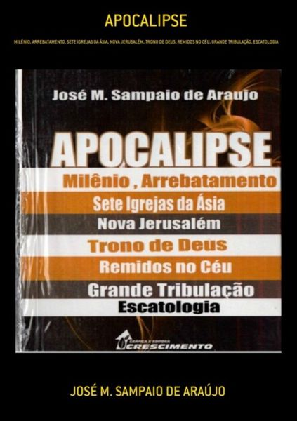 Obra Escatológica inédita, interpretando versículo por versículo, em linguagem simples, de fácil entendimento, sem mistificação. O autor, de forma clara nas suas convicções apresenta ao leitor um verdadeiro manual de escatologia, com uma linguagem moderna sem perder a erudição e a capacidade de teologizar sobre um tema que para muitos é complexo. Porquanto recomendamos essa obra a todos os que amam e aguardam a vinda de nosso Senhor Jesus Cristo. Os Editores.