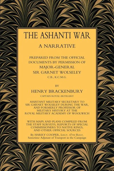 Henry Brackenbury was a brilliant staff officer - one of the "e;Garnet Ring"e; that surrounded the famous General Sir Garnet Wolsey. This is a very serious and detailed two-volume account of the brief but bloody Ashanti campaign - containing a lot of background and logistics. The Ashanti War came about after the armies of the ambitious Ashanti Empire moved south, attacking coastal tribes in the Gold Coast under British protection. After naval forces had failed to deter them, a military expedition was mounted under Wolseley, including soldiers from the Rifle Brigade, the Black Watch and the Royal Welch Fusiliers. Garnet moved against the Ashanti early in 1874, twice defeated them, and occupied their capital Kumasi. In the wake of the defeat, other small tribes asserted their independence and eventually Britain, after restoring oirder, was compelled to add the Gold Coast to the dominions fo the British Empire. Losses in the war were an estimated 1,000 British and 2,000 Ashantis.
