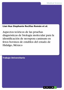 Trabajo Universitario del año 2012 en eltema Veterinaria , Nota: 3,99, , Idioma: Español, Resumen: Neospora caninum es un protozoario intracelular obligado que pertenece al phylum Apicomplexa, familia Sarcosystidae. Éste parásito, fue confundido con Toxoplasma gondii, debido a sus similitudes estructulares, Thilsted y Dubey identificaron por primera vez a N. caninum en 1988 como agente etiológico de aborto en bovinos. En 1993 se consiguió el primer aislamiento procedente de un feto bovino abortado. Posteriormente, se logró la reproducción de la muerte fetal en vacas gestantes inoculadas experimentalmente. N. caninum se ha detectado en la mayoría de las especies domésticas como los bovinos, quienes ingieren ooquistes excretados por caninos, identificados como hospederos definitivos. Se plantea que la humedad, como es el caso de la zona estudiada, posibilita que los ooquistes expulsados al exterior esporulen y permanezcan en fase infectiva y viables en la tierra, suelos y pastos por varios meses. Esto deviene en una vía de transmisión segura, para el hospedero intermediario. En bovinos gestantes, la ingestión puede conducir a la transmisión transplacentaria exógena o en el caso de infección crónica, a la transmisión endógena debida a la reactivación de quistes que contienen bradizoitos, que, en la mayoría de los casos desencadena el proceso abortivo. Al no haber lesiones macroscópicas patognomónicas, el diagnóstico puede hacerse de diferentes formas. El estudio histopatológico de tejido fetal esencialmente de cerebro se utiliza como prueba de escrutinio, a pesar de su baja sensibilidad; ya que no requiere de una operación costosa. Pero, la aplicación de rtPCR se ha empleado mayoritariamente en tejido del sistema nervioso central, como prueba confirmatoria, por su alta sensibilidad y especificidad, aunque no se ha usado de manera rutinaria en el diagnóstico, básicamente por el alto costo, equipo y experiencia requeridos para desarrollar dicha técnica. En México se han realizado diferentes estudios para estimar la seroprevalencia del parásito en animales hospederos. Sin embargo, la identificación del agente causal de abortos bovinos, debe estipularse de manera clara a través de una técnica sensible y específica como PCR, con dicho análisis la detección de DNA compatible con N. caninum sería útil para confirmar el diagnóstico de éste protozoario, sin la confusión con algún otro parásito, además se define el estado de infección para plantear posteriores tratamientos farmacológicos en bovinos.