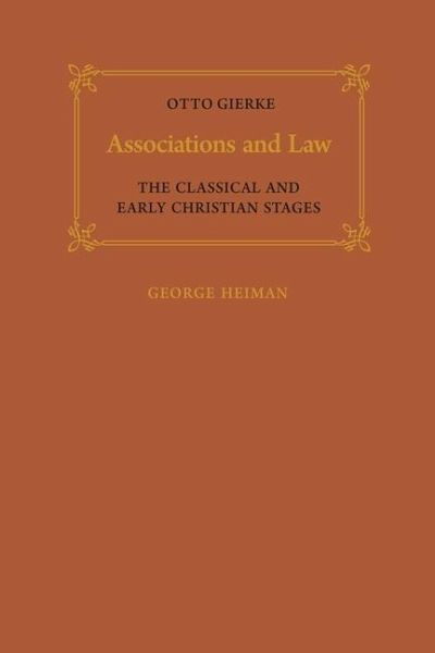 George Heiman has translated the discussion of classical and early Christian laws of association from the major works by Grotto Gierke, Das deutsche Genossenschaftsrecht. This work complements F.W. Maitland's translation of a later part under the title, The Political Theories of the Middle Ages, and E. Barker's translation of the third part, Natural Law and the Theory of Society, 1500-1800. Professor Heiman thus has completed the circle in bringing into English the eminent German jurist's historical analysis of the law.Professor Heiman furthermore has introduced the work with substantial, detailed, and scholarly essays on Gierke's work as a whole. He examines and explains Gierke's concept of the group-person and his organic view of the association, society, and the state, and clearly outlines the conflict between individualist Roman and collectivist Germanic law. This introduction provides the first complete analysis in English of the philosophy of a major representative of the school of historical law and a jurist whose thinking is reflected in the general civil code adopted in Germany at the end of the nineteenth century. The book will interest political and social theorists as well as those concerned with jurisprudence and legal philosophy.