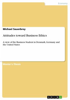 Master's Thesis from the year 2010 in the subject Business economics - Business Ethics, Corporate Ethics, grade: 1,0, Aarhus School of Business (Marketing und Statistik), language: English, abstract: Business is essential for the development and well-being of a society. However, business does not exist in a vacuum, but is simultaneously dependent on a number of stakeholders, be it employees, customers, investors, interest groups, or the government. In this sense, an extensive and critical debate about the role and conduct of business, and their associated corporate responsibilities in the community, is taking place among academics and practitioners alike. Thereby, it is essential to consider that the practices of corporations are first and foremost resulting from decisions and behaviors of human beings. Business students in their role as future managers are likely to be faced with critical ethical decisions in their daily work routine. Thus, investigating their moral mindset about aspects of business ethics is of great importance. Therefore, the purpose of this master thesis was first of all to critically reflect the academic literature, and present a theoretical framework that addresses valuable concepts with regard to the good life and the just social coexistence of business and society. In a second step, a comprehensive empirical research was conducted, which studied the attitudes toward aspects of business ethics among 1.271 business students in Denmark, Germany, and the United States, using a self-report online questionnaire. Participants evaluated a wide range of questions regarding the moral dimensions underlying the relation of business and society. They were furthermore asked to specify primary and social corporate responsibilities, to define a well-run company, and to state personal criteria that are relevant for them in a notional job offer situation. Gathered data were analyzed on differences among nationalities, as well as on distinctions within the three countries in terms of gender, academic level, age, and business ethics education. Findings revealed optimistic and critical effects alike. Attitudes differed significantly among the three countries in a high number of aspects. Females showed stronger ethical attitudes than males. The impact of a business ethics course was positive, but varied in intensiveness among the three countries. Similarly, undergraduate and graduate students signified differing effects that intensified with age. In general, business students indicated their importance for social factors, and responsible corporate behavior. However, they prioritized career aspects over social criteria ... (to be continued) ...