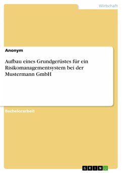 Bachelorarbeit aus dem Jahr 2016 im Fachbereich BWL - Sonstiges, Note: 1,0, Duale Hochschule Baden-Württemberg, Stuttgart, früher: Berufsakademie Stuttgart, Sprache: Deutsch, Abstract: In der Bachelorarbeit wurde ein Grundgerüst für ein Risikomanagement für ein mittelständisches Unternehmen erstellt. Um das Rahmenwerk, in dem sich die Unternehmung bewegt, besser abzugrenzen, findet zu Beginn eine Auseinandersetzung mit der Notwendigkeit eines Risikomanagementsystems (RMS) allgemein sowie den einschlägigen Gesetzestexten statt. Dabei sollen die vordefinierten Mindestanforderungen an ein RMS aus Normen und Gesetzen abgeleitet und mit den Anforderungen des Unternehmens Mustermann abgeglichen werden. Die erarbeiteten Informationen sind somit als Basisanforderungen an ein Risikomanagement zu betrachten. Sie dienen außerdem als Grundlage für eine weitere Beschäftigung mit dem Risikomanagementprozess im Unternehmen Mustermann selbst. Als erstes werden geeignete Instrumente für die Risikoanalyse gesucht. Zu diesem Zweck ist eine kritische Auseinandersetzung mit Werkzeugen zur Identifikation, Bewertung und Aggregation auf der einen Seite, als auch eine Analyse derjenigen Methoden, die dafür am sinnvollsten erscheinen, auf der anderen Seite vonnöten. Nachdem die Risikoanalyse abgeschlossen ist, wird sich die Arbeit in der anschließenden Risikosteuerung mit geeigneten Steuerungsstrategien und -instrumenten beschäftigen, um der Unternehmensführung ausreichend Informationen bereitzustellen, die wiederum als Grundlage für weitere Entscheidungen dienen können. In der letzten Phase des RMS-Prozesses muss auf die Risikokommunikation eingegangen werden, worunter die Punkte Risikoüberwachung, -berichterstattung als auch -dokumentation fallen. Dabei soll die adressatengerechte Verteilung der Informationen fokussiert werden. Abschließend wird eine Handlungsempfehlung mit einem Grundgerüst an Methoden, Instrumenten und Mitarbeitern formuliert, die für die anfängliche Umsetzung am sinnvollsten erscheint.