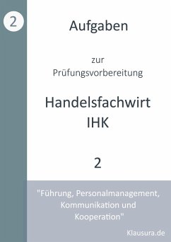 Dieses Buch Aufgaben zur Prüfungsvorbereitung für geprüfte Handelsfachwirte - Führung, Personalmanagement, Kommunikation und Kooperation wurde von erfahrenen Dozenten zusammengestellt, die über viele Jahre Erfahrung in der Weiterbildung und Prüfungsvorbereitung verfügen. Die hier erstellten Aufgaben werden von den Dozenten auch in Ihren Unterrichtseinheiten verwendet und bilden somit eine fundamentale Basis für Ihre persönliche Prüfungsvorbereitung, da sie sich an Prüfungsaufgaben und den Inhalten des Rahmenstoffplanes der jeweiligen Ausbildungsthemen orientieren. Die Lösungen sind ausführlich mit wichtigen Anmerkungen der Ersteller versehen, um den Prüfungsteilnehmer Sicherheit im Umgang mit der Beantwortung der Fragen zu geben und so eine perfekte Vorbereitung auf die Prüfung zu gewährleisten. Weitere Unterlagen zur Prüfungsvorbereitung, in Form von Aufgaben Zusammenfassungen und Leitfäden finden Sie unter klausura.de.