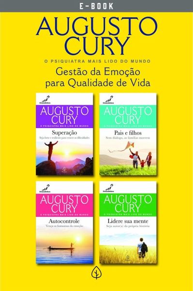 Augusto Cury é o psiquiatra mais lido do mundo, publicado em mais de 70 países. Neste box especial, o autor traz técnicas para desenvolver a memória e para proteger a emoção, orienta sobre como viver melhor, atingir o equilíbrio e assumir o papel de protagonista da própria vida. De maneira clara e eficaz, Cury compartilha como conduzir a vida sem ansiedade, sem ser engolido pela rotina, e treinar nossa inteligência emocional para filtrar estímulos estressantes. Aprenda a ser o gestor de si, com os livros: Lidere sua mente, Autocontrole, Pais e filhos e Superação.