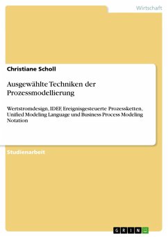 Studienarbeit aus dem Jahr 2017 im Fachbereich BWL - Sonstiges, Note: 1,5, AKAD University, ehem. AKAD Fachhochschule Stuttgart, Sprache: Deutsch, Abstract: Die wissenschaftliche Arbeit zur Prozessmodellierung für Online-Shops bietet eine umfassende Übersicht über fünf bedeutende Modellierungsmethoden, die dazu beitragen, Geschäftsprozesse systematisch und effizient zu gestalten: Wertstromdesign, IDEF, EPK, UML und BPMN. Diese Techniken werden profund analysiert und gegenübergestellt, um ihre Stärken und Einsatzmöglichkeiten zu verdeutlichen. Das Ziel ist die Optimierung der Unternehmensabläufe zur Stärkung ihrer Wettbewerbsfähigkeit.