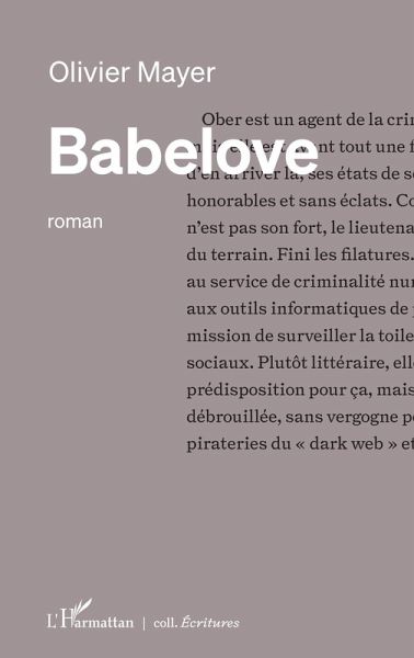 Babelove est un réseau social dédié à l''amour. Trois jeunes modérateurs y ont pour mission de censurer les publications lorsqu''elles ne sont pas conformes à l''éthique de l''entreprise. Leur quotidien est pénible jusqu''au jour où ils assistent en direct à des scènes de crime et deviennent tour à tour témoins puis suspects. Le lieutenant Ober mène cette enquête périlleuse avec plus ou moins d''adresse. Quoiqu''attachante, elle n''hésite pas àfranchir les limites de la décence pour parvenir à ses fins. Réussira-t-elle à trouver l''ultime preuve qui leur rendra à tous un peu d''authenticité ? C''est l''enjeu de ce roman noir, une aventure palpitante et très contemporaine.