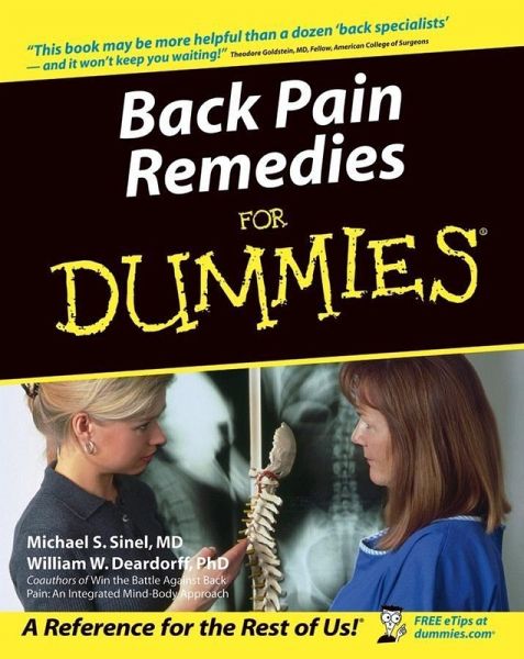 Get back in control of your back pain Back pain is such a common condition that many doctors andresearchers consider the complaint a normal part of life, similarto having an occasional cold or flu. If you are a back painsufferer, you are not alone: * Back pain affects more than 80 percent of the population atsome time during their lifetime. * Back pain is second only to the common cold as a reason forvisits to the doctor and it is second only to childbirth as areason for hospitalization. * Approximately 50 percent of the working population reports backproblems every year. * The total medical cost of back pain exceeds 20 billion dollarsa year in the United States. Back Pain Remedies For Dummies takes a holistic approachto back pain prevention and treatment. Exploring the therapeuticoptions - from conventional medicine to popularalternative treatments - this patient-friendlyguide gives you a heads-up on how to relieve pain now and avoidfuture injuries, plus * Boning up on your spinal column's pieces and parts * Uncovering some conditions that cause back pain * Examining the lineup of doctors who treat what ails yourback * Taking your pain lying down - or not * Giving weight to alternative therapies, including yoga,acupuncture, and imagery exercises * Promoting the importance of good posture * Returning to work and play with a healthy outlook * Saying yes to sex after a back injury As you try to manage your back pain problem and investigatevarious treatment approaches, you can help yourself by beingassured and hopeful that you can remedy your problem. This reliablereference gives you plenty to reason to believe that back pain doesget better, and successful treatment is possible. You can expect tofind the best treatment for your back problem when you have someunderstanding of who treats back pain, how he or she treats it, andwhy using a multidisciplinary approach isimportant - all of that awaits in Back PainRemedies For Dummies.