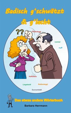 Badisch g 'schwätzt und g 'lacht Das Badische hat seine Wurzeln nicht ausschließlich in der Region. Die Einflüsse kommen auch aus der Kurpfalz, aus dem Frankenland und dem alemannischen Sprachraum. An der einen oder anderen Stelle hat sogar das Schwäbische seine Spuren hinterlassen und dies, obwohl die Badener und die Schwaben sich nicht ganz so sehr mögen. Für Auswärtige ist das Kauderwelsch oft kaum zu verstehen, da sich sowohl Grammatik als auch Vokabular teilweise erheblich vom Hochdeutschen unterscheiden. Die Badener leben sehr traditionsbewusst und pflegen intensiv ihren Regionalstolz und die Tatsache, ein Badener zu sein. Dabei hält sich besonders in ländlichen Gegenden die Mundart bis heute. Die badische Identität spiegelt sich sehr oft in den trockenen Einlassungen, den Sprüchen und Schimpfwörtern wie Schlappedengler, Daagdieb, Dreggschbadds, Gifdschbridds und Schrabbnell wider, die für Außenstehende fast wie eine Beleidigung klingen. Sie sind im Badischen aber lange nicht so gemeint, sondern geben den Alltag, die Lebensart der Badener wieder, die weiter bewahrt und gepflegt werden sollte und auch für Nichtbadener eine humorvolle Erfahrung ist. Eine ausführliche Stichwortliste ist die Basis für dieses Wörterbuch. Zusätzlich erklären einige Comicfiguren mit witzigen Dialogen in 282 Grafiken, die badische Sprache.