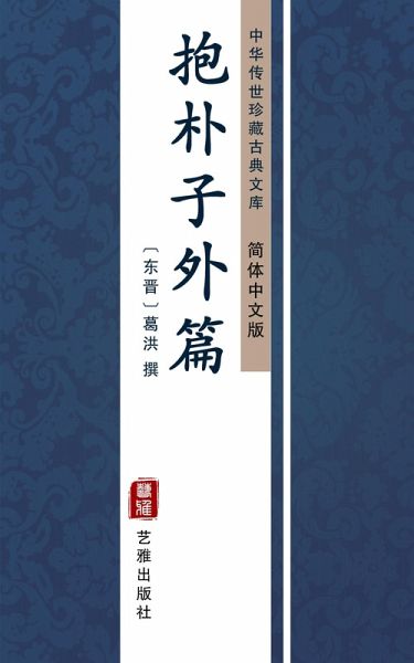 Bao Pu Zi Wai Pian is a treasured Chinese classic by Ge Hong. It is a work that has been widely read and spread at home and abroad, worthy to be savoured and enjoyed again. This carefully crafted e-book is a Simplified Chinese edition with complete 50 chapters. We also separately provide the same title in a Traditional Chinese edition and a Simplified-Traditional Chinese comparison edition.