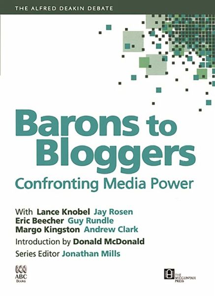 Whatever one thinks of Rupert Murdoch or his ethics, when a mogul of his stature stands on a public platform and predicts the end of God-like media figures telling people what's important, you begin to realise that there's something seismic going on in the world of communications. Seismic, but unpredictable. -Eric Beecher, Publisher, crikey.com Media power is undergoing a massive transformation. Is the Internet undermining the authority of traditional news institutions? And will it fulfil our expectations of greater democracy? In a provocative and incisive debate, Barons to Bloggers brings together prominent international and Australian media commentators to examine what is shaping up to become the radical upheaval of the old hierarchies of news and opinion. Contributors: Lance Knobel, former Program Director, World Economic Forum Jay Rosen, Associate Professor of Journalism, New York University Donald McDonald, Chairman, Australian Broadcasting Corporation Eric Beecher, Publisher, crikey.com Guy Rundle, writer and Executive Producer, ABC TV Margo Kingston, political commentator and Editor, SMH's Webdiary Andrew Clark, Australian Financial Review journalist, former Editor, Sun-Herald