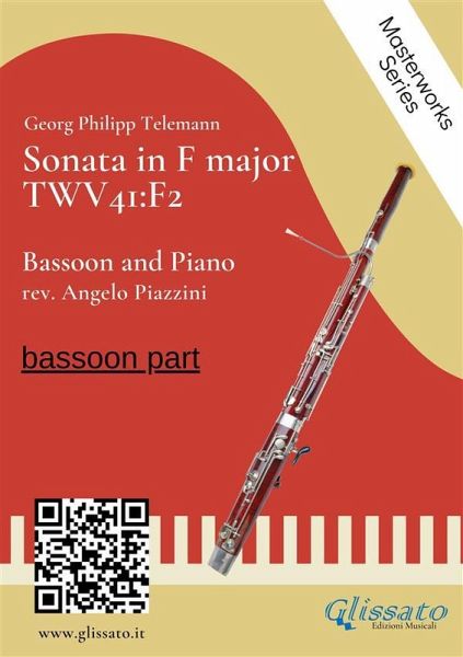 Bassoon part: Sonata in F major (TWV41:F2) by Georg Philipp Telemann, rev. Angelo Piazzini for Bassoon and Piano. Piano part available in series. E-book published by Glissato Edizioni Musicali - www.glissato.it